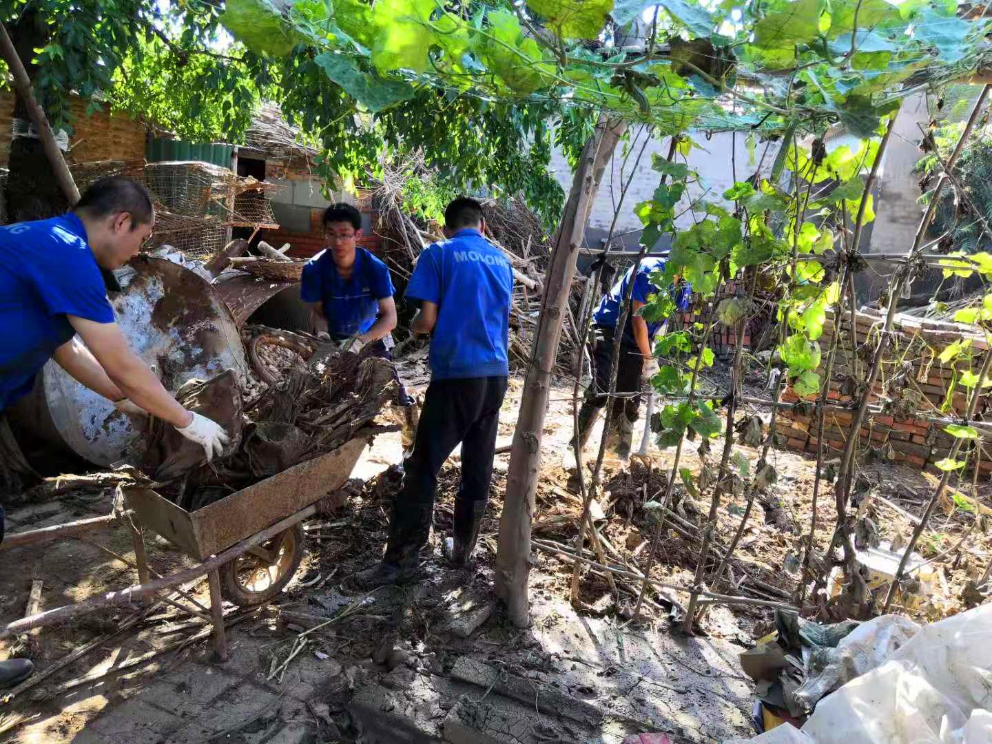 近幾日的志愿服務(wù)活動中,我公司每天保證有約30人的志愿隊伍在南王家莊子村為村民清理家中的淤泥和垃圾,幫助拆除因水泡而損毀的土炕、院墻等。兩部大型叉車白天不停歇鏟除道路上的雜物。8月17日晚,我公司志愿服務(wù)隊伍接到了最新的工作安排,集中隊伍人力,清理村莊的中心大街。中心大街道路較長,面積大,我們志愿隊伍將全力以赴進(jìn)行清理,這也是我們當(dāng)前的重點工作。
