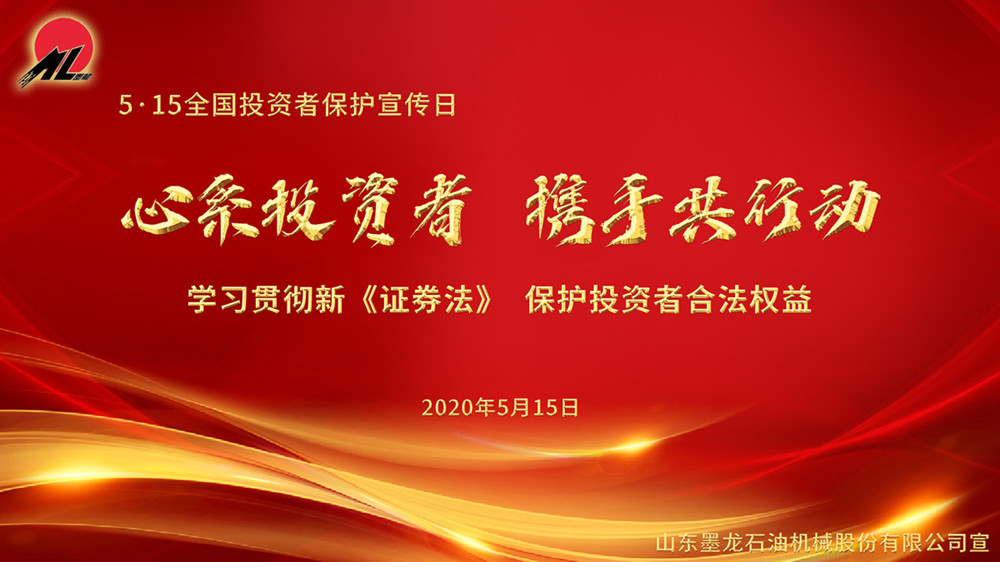 為做好“5.15全國投資者保護(hù)宣傳日”的投資者保護(hù)宣傳,山東墨龍(002490)積極響應(yīng)山東證監(jiān)局號(hào)召,以“心系投資者,攜手共行動(dòng)—學(xué)習(xí)貫徹新《證券法》,保護(hù)投資者合法權(quán)益”為活動(dòng)主題,開展投資者保護(hù)宣傳活動(dòng)。公司將持續(xù)加強(qiáng)公司信息披露質(zhì)量、增加公司透明度,積極開展投資者互動(dòng)溝通工作,營造良好的投資者關(guān)系氛圍,增進(jìn)投資者對(duì)上市公司的了解,全方位引導(dǎo)投資者樹立正確投資理念,更好地維護(hù)投資者的合法權(quán)益。