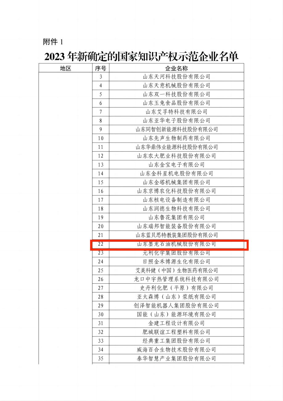 2023年11月29日,國家知識產(chǎn)權(quán)局公布了2023年新一批及通過復核的國家知識產(chǎn)權(quán)示范企業(yè)和優(yōu)勢企業(yè)名單,山東墨龍石油機械股份有限公司(以下簡稱“山東墨龍”)成功入選,成為壽光市首家國家知識產(chǎn)權(quán)示范企業(yè)。
